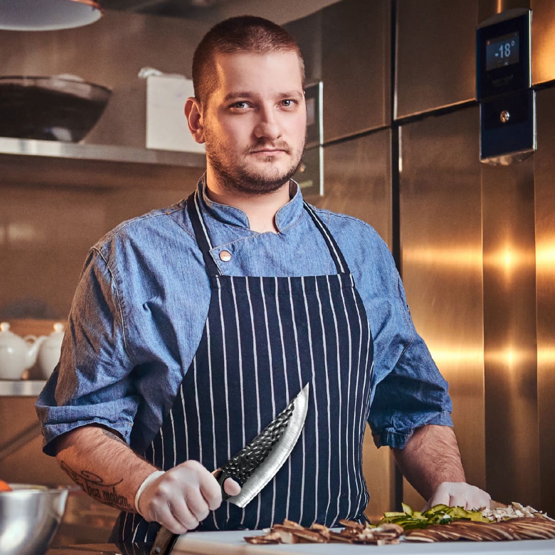 "Цим ножем я створюю шедеври на кухні. Він не тільки гострий, але і простий у використанні. Я задоволений і рекомендую його всім кухарям!"