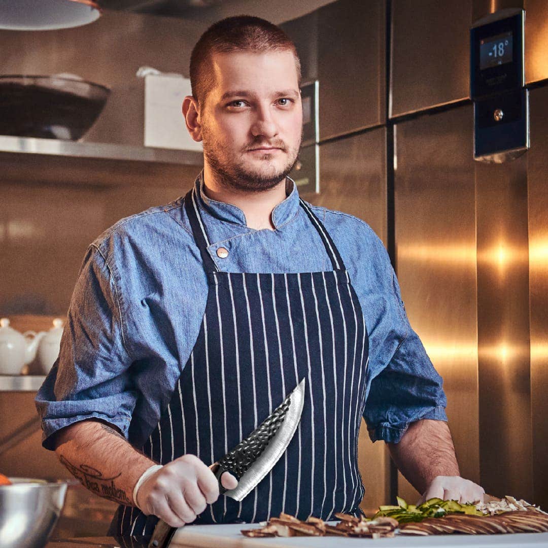 Абсолютно. За декілька десятиліть досвіду в галузі кулінарних інструментів ми розробили ніж, який відповідає потребам найвибагливіших шеф-кухарів. Він ефективно справляється з будь-якими продуктами, від овочів до м'яса.